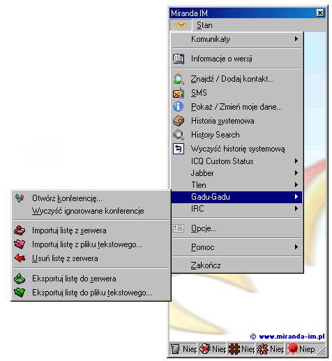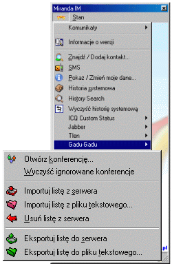 Importu/eksportu listy kontaktów z serwera można dokonać w bardzo prosty sposób przy pomocy funkcji dostępnych w menu głównym.